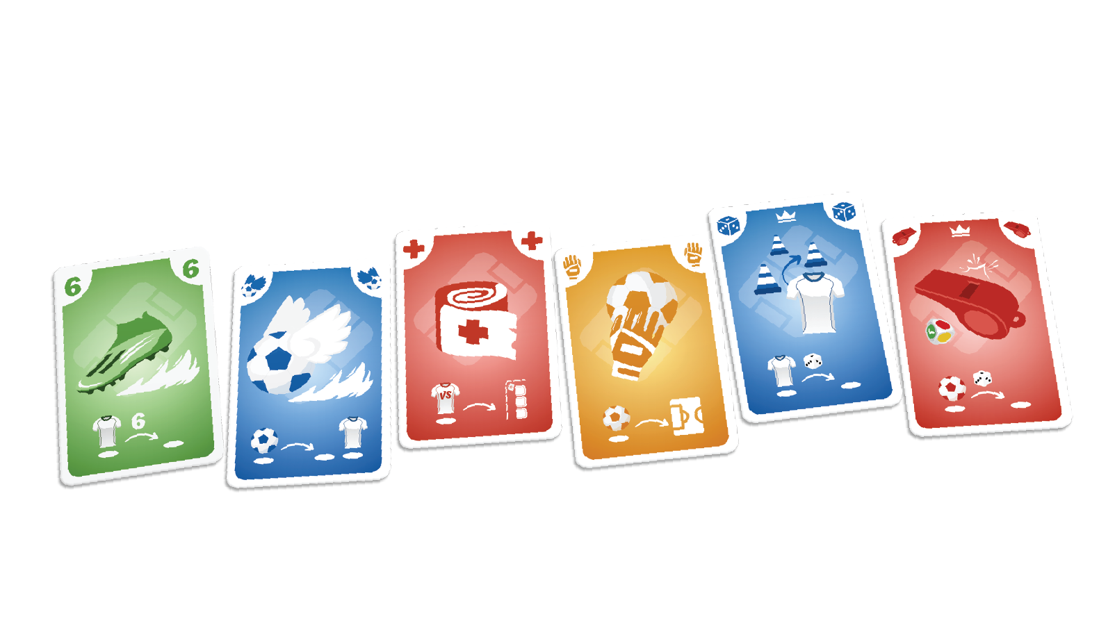 Tu pourras aussi jouer d’autres cartes d’arbitrage et/ou tactique pour surprendre l’équipe adverse ainsi que des cartes de parade pour éviter de prendre un but.